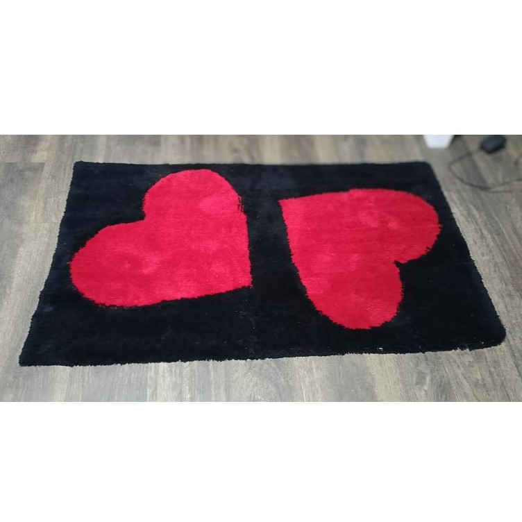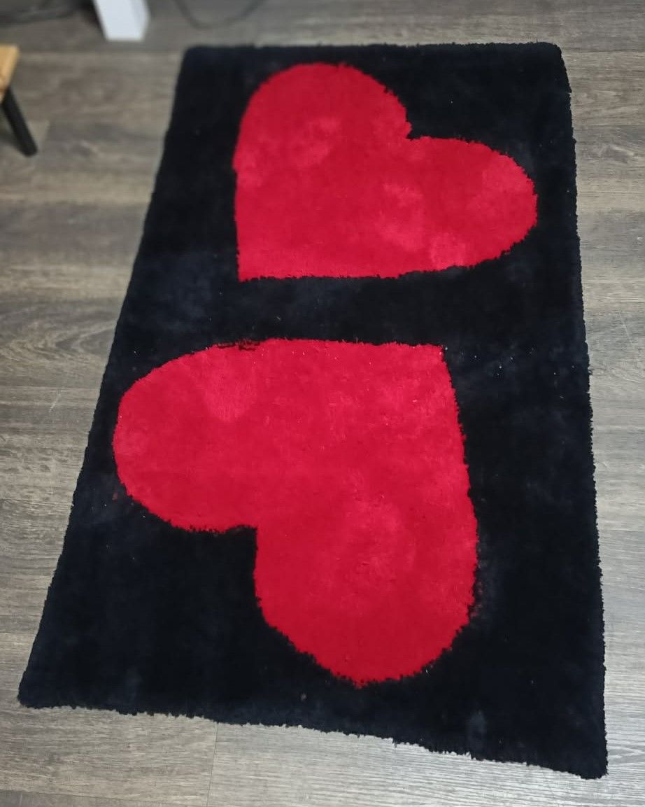 dywan pokazany na zdjęciu przykładowy ma kolor czarny, a serca ciemno czerwone