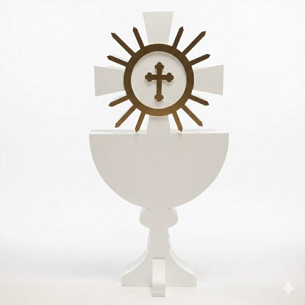 malowany i wykonany z styropianu ,wyklejany plexsa malowana na kolor złoty