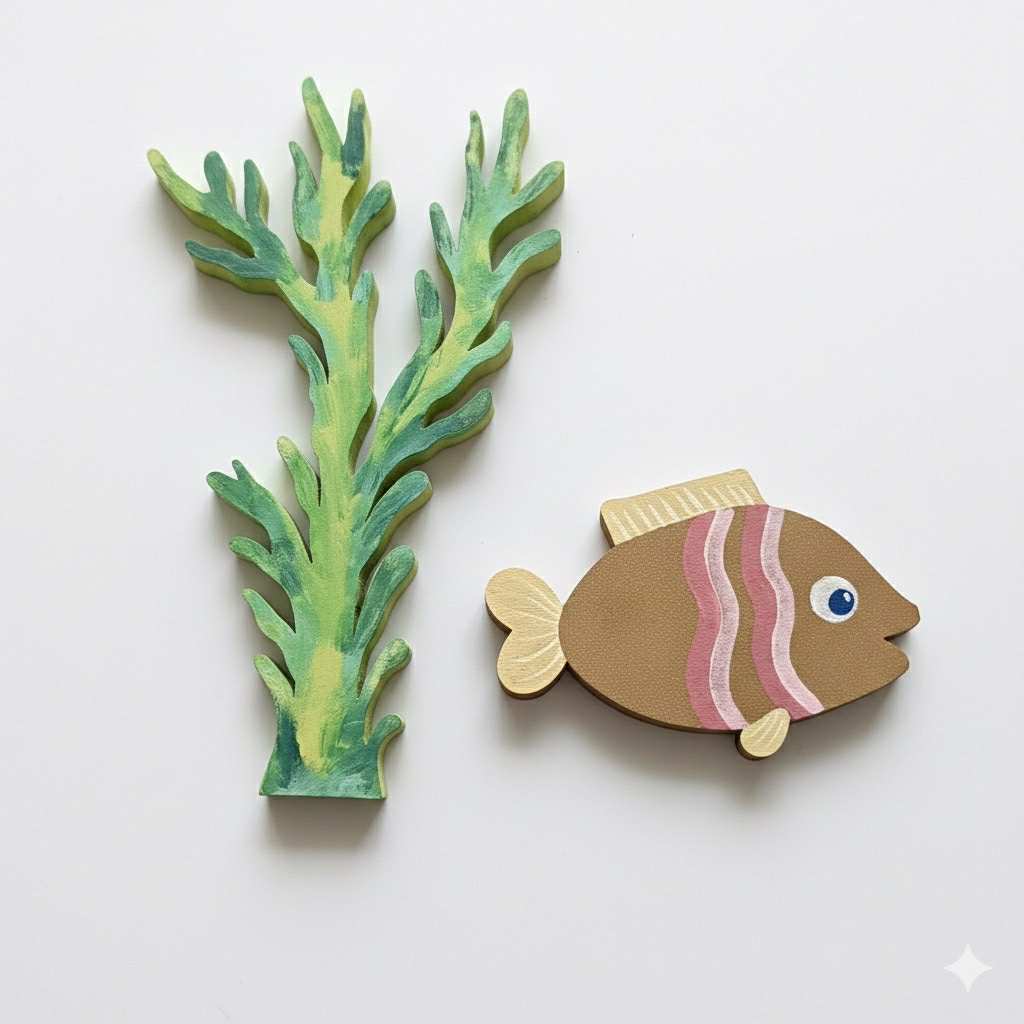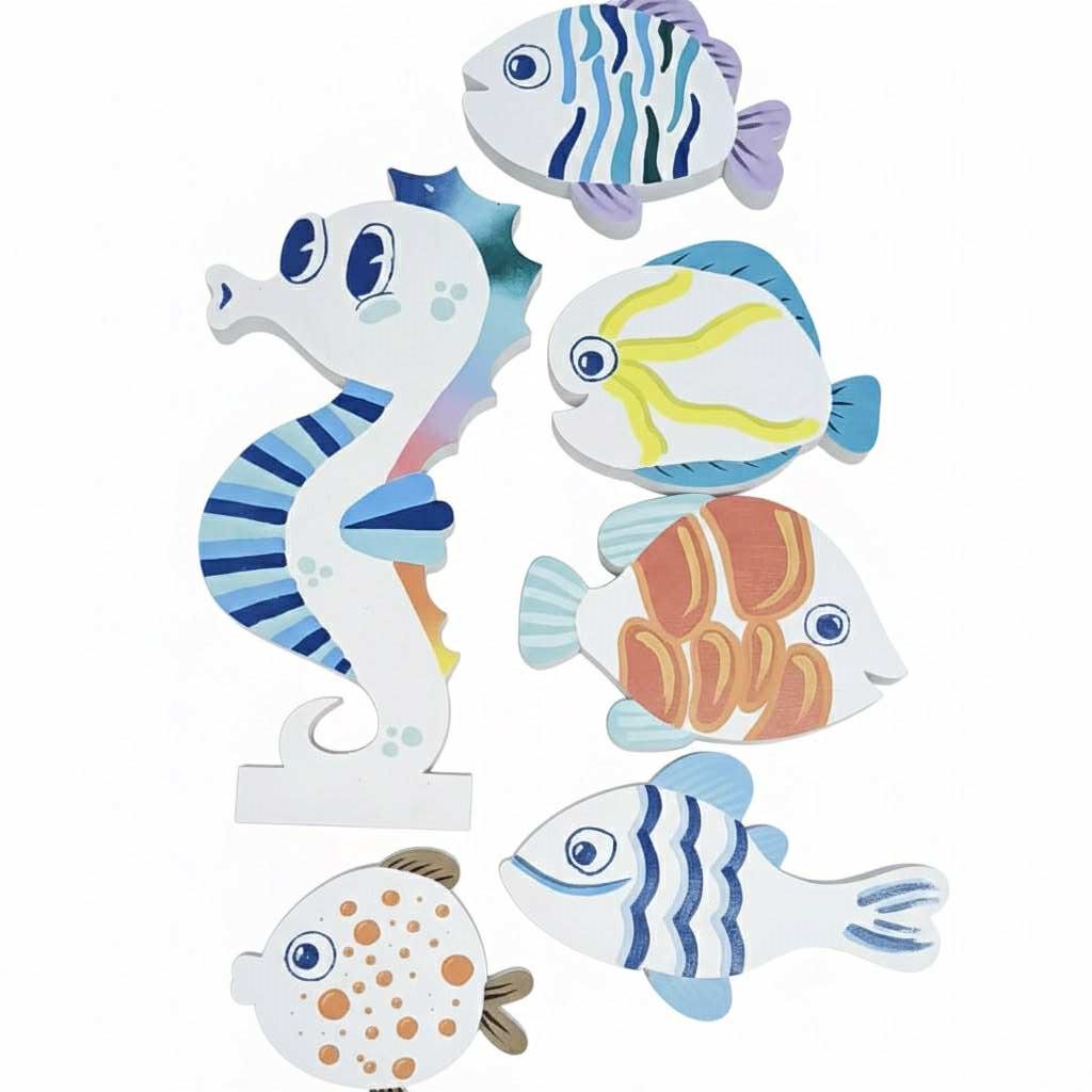 6 sztuk rybek oraz konik morski i trawa